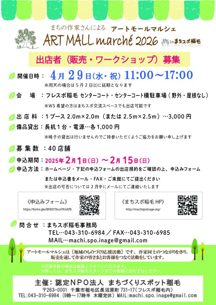 アートモールマルシェ2026 春 出店受付開始 2/1~㈰~2/15㈰まで